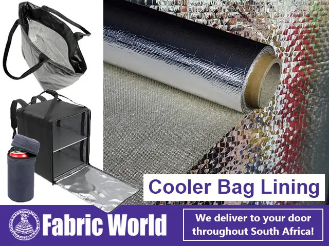 At Fabric World George we stock durable and insulating cooler bag lining. It is perfect for keeping food and drinks fresh and cool for longer. Make your own cooler bag, picnic bag, lunch bag, delivery bag or custom cooler. The options are endless!
